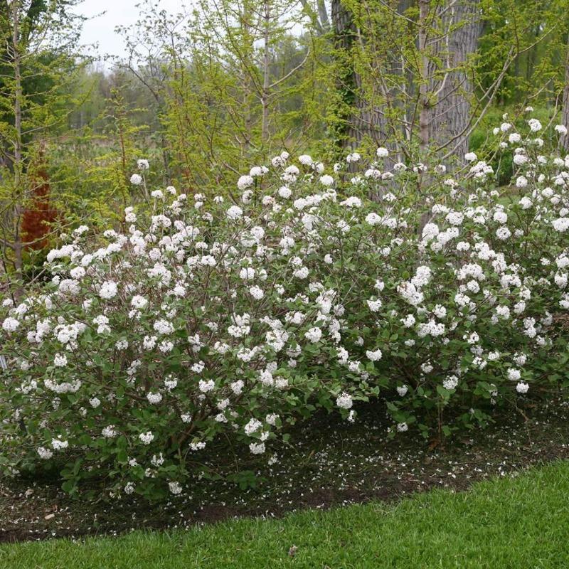 Koreanspice Viburnum Shrubs or Viburnum carlesii is a truly breathtaking shrub when in bloom, clothed in snowy white fragrant flowers. It has attractive horizontal branching and good fall color, making it a fantastic specimen shrub. Korean Spice Viburnum is draped in stunning white daphne-like flowers held atop the branches in mid-spring.