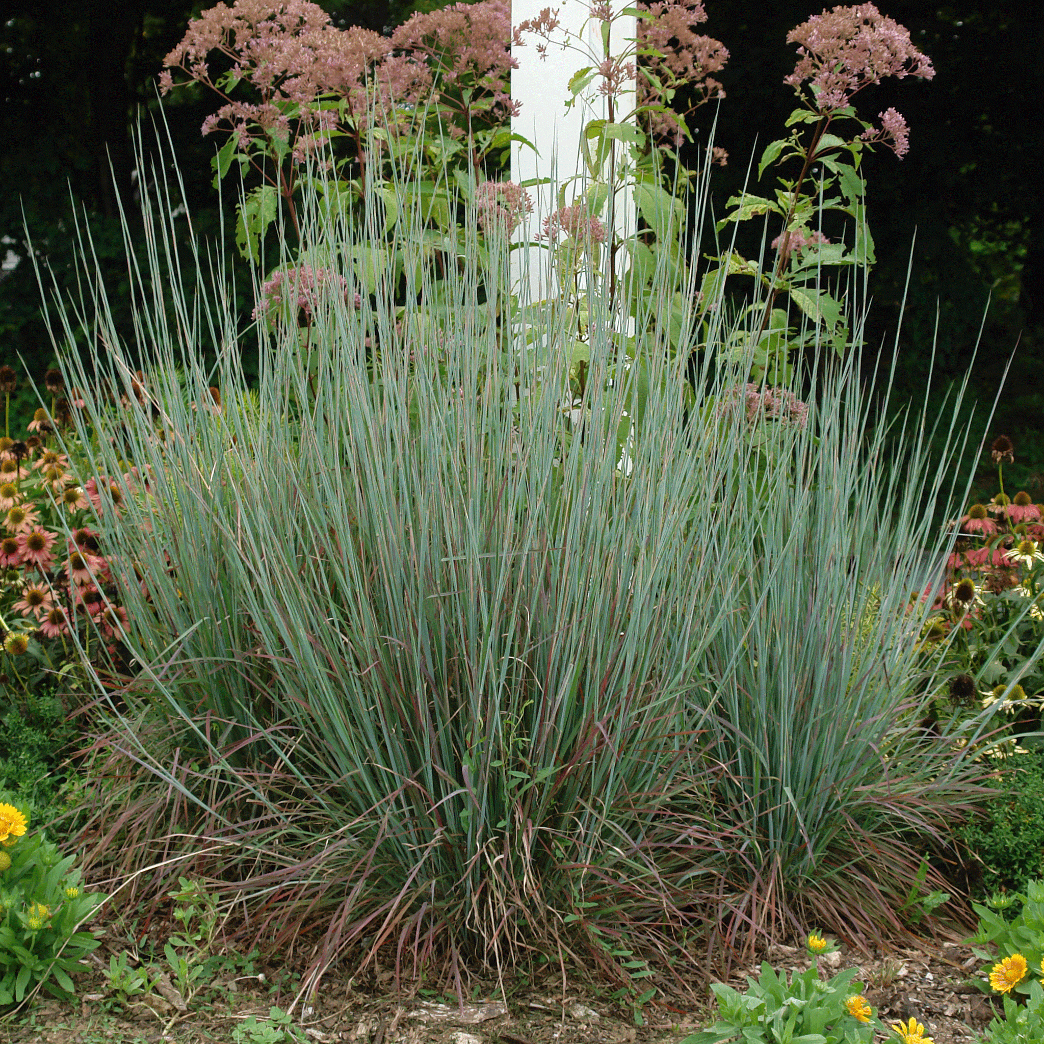 The Standing Ovation Little Bluestem also known by its botanical name, Schizachyrium scoparium it a fantastic grass perennial that has strong stems that can hold up to high winds and won't flop over. With it's almost all year round interest, it provides a plethora of different colors from June through November with colors starting from Greenish blue slowly to a nice Fall red.