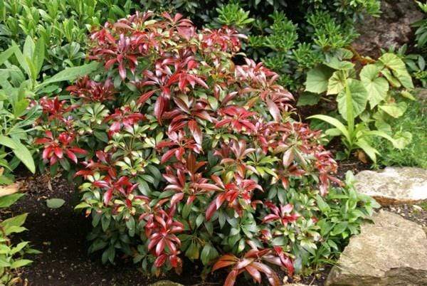 Pieris Katsura was hybridized by Yoshimichi Hirose. It stands above all previous Pieris introductions owing to its unparalleled, wine-red new growth. Pieris Katsura will continue to push new, richly colored foliage all summer long.