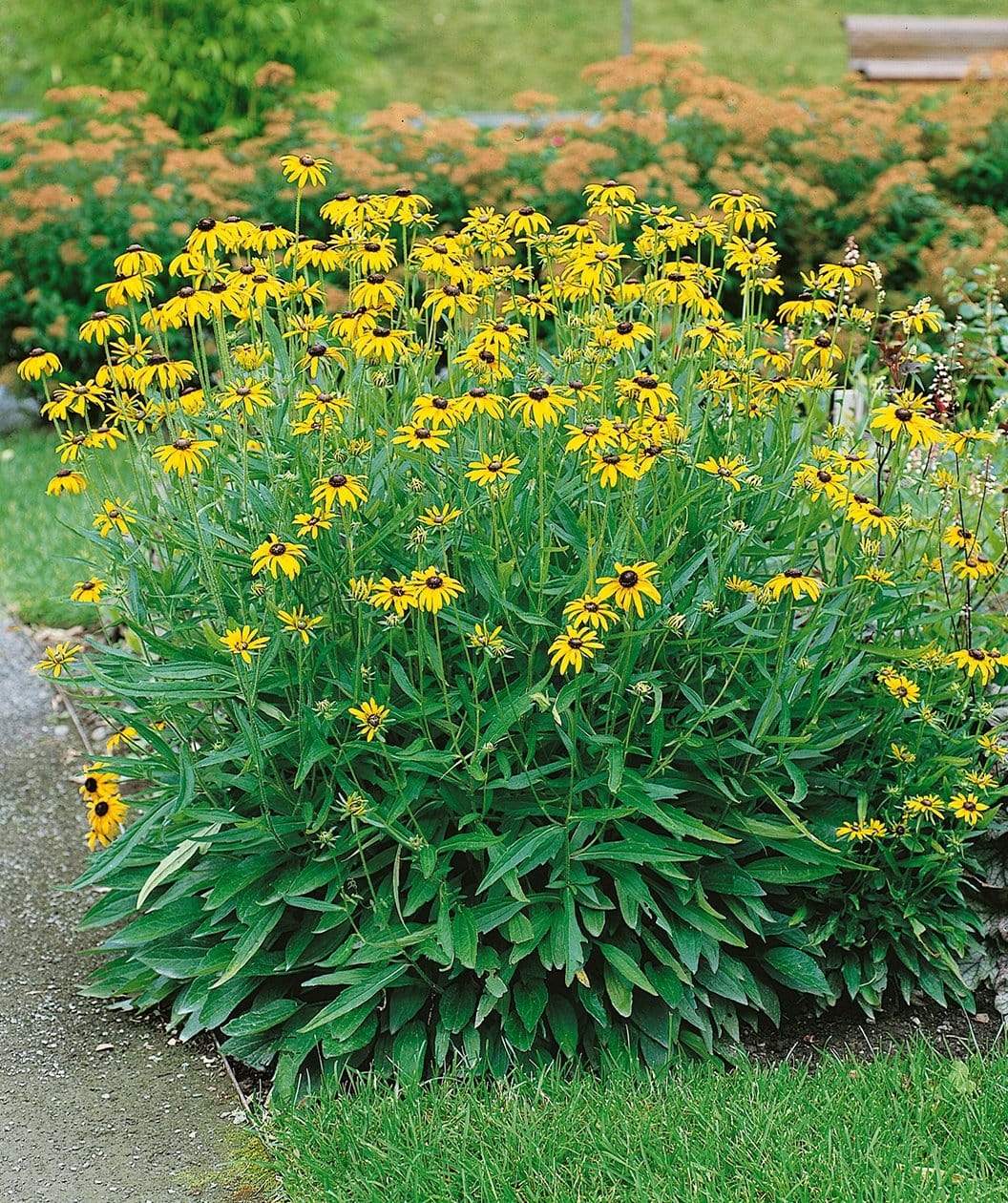 The Rudbeckia Viette's Little Suzy or the Little Suzy Black-eyed Susan is a shorter, more compact version of the original Guldsturm selection and blooms just as long from July all the way through October. This Black-eyed Susan is great for adding color to any mixed border or wildflower planting beds.