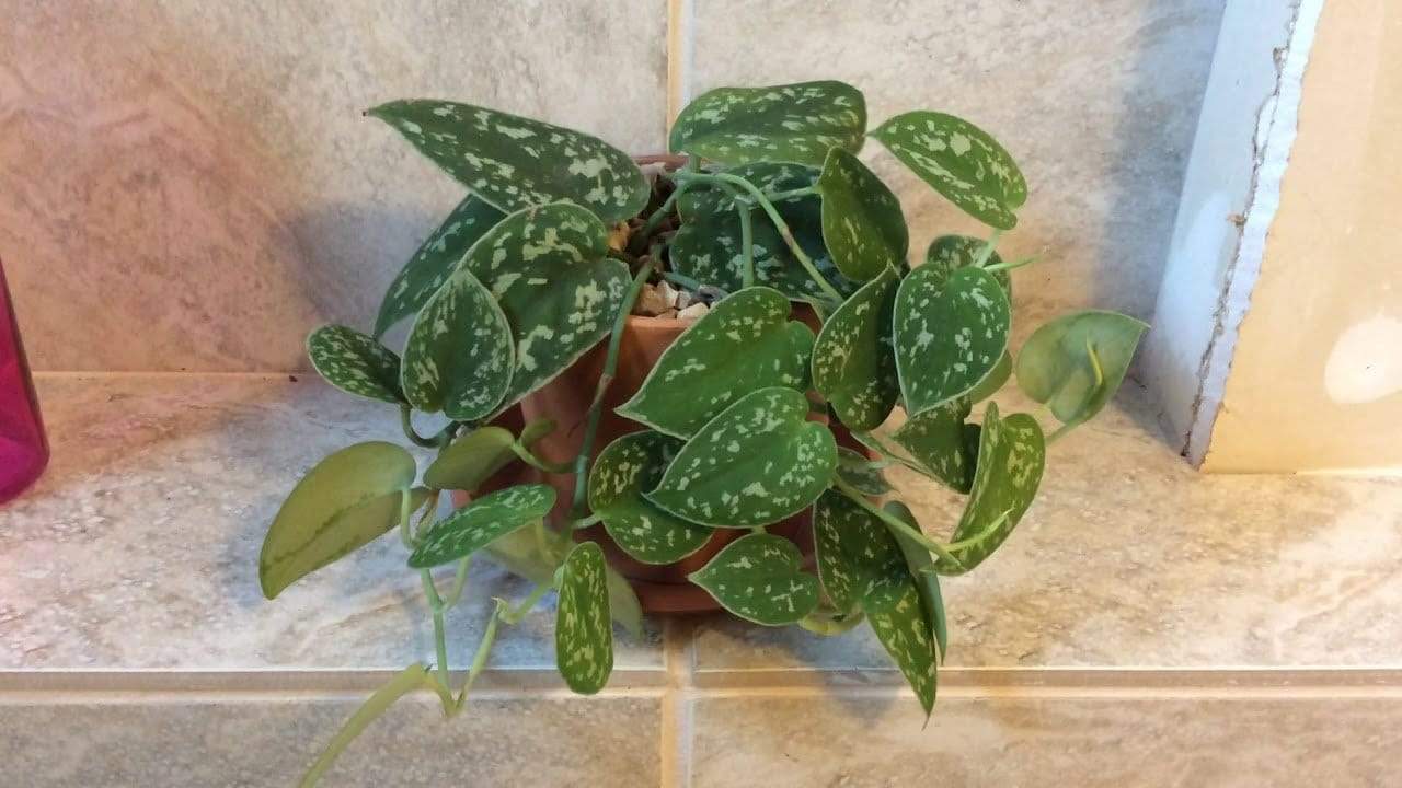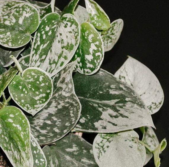 Silvery Ann Pothos Plants have intriguing silver and green tear-shaped foliage with a tendency to trail and cascade. For that reason, Silvery Ann Pothos Plants does well in hanging baskets or plant stands where the foliage can vine freely, covering space other plants can't.
